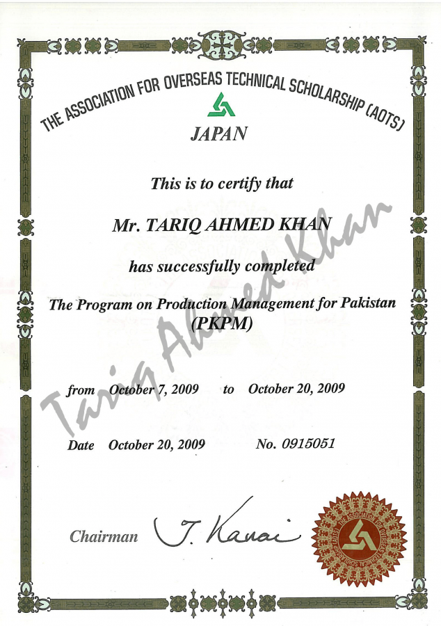 AOTS – Production Management for Pakistan – Toyota Motor Corporation Japan, 2009