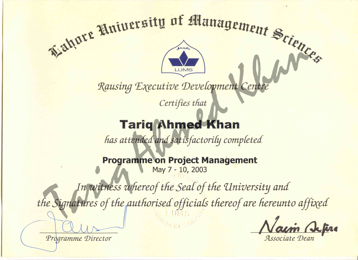 Project Management - Lahore University of Management & Science, 2004.