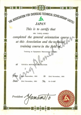 AOTS – Training on Equipment Maintenance Process – Toyota Motor Corporation Japan, 1991